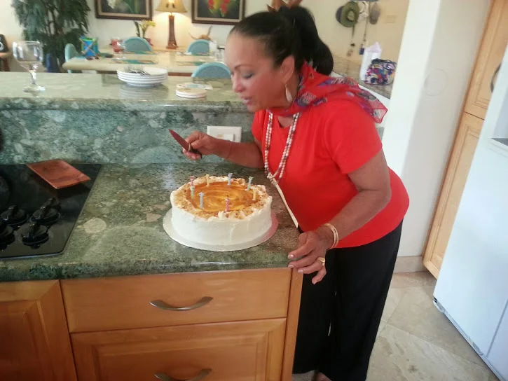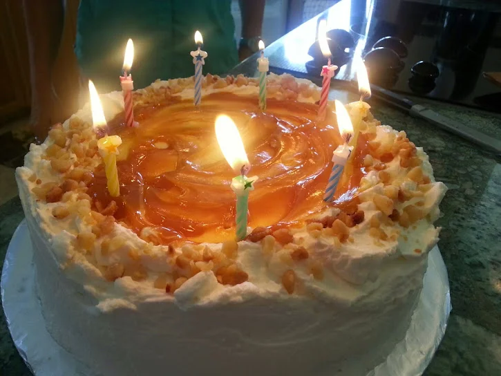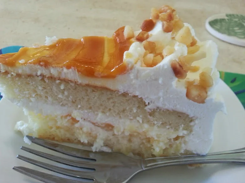 PARTY with pistachio cake, cream cheese and whipped cream topped with nuts, grated tangerine and Hawaiian sea salt.